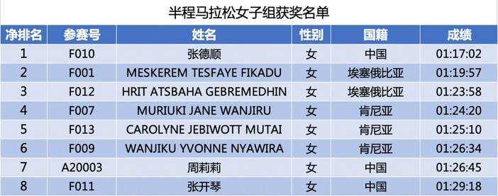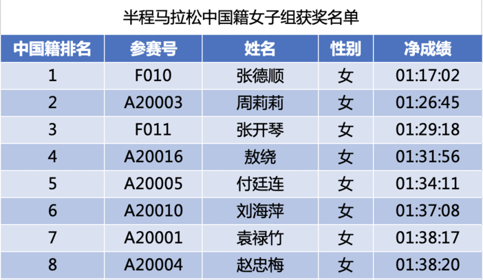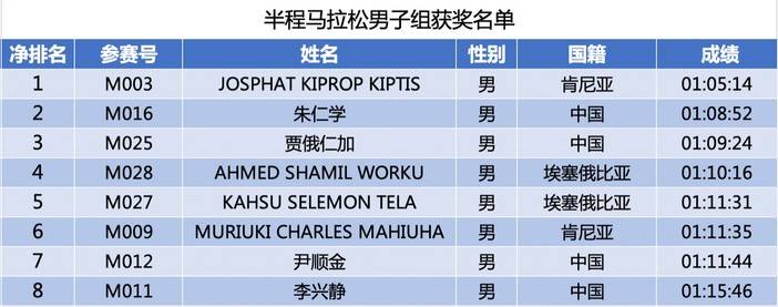 2、半程马拉松名次奖前三名男、女运动员的获奖名次以枪声成绩为准,其他名次以净计时为准。